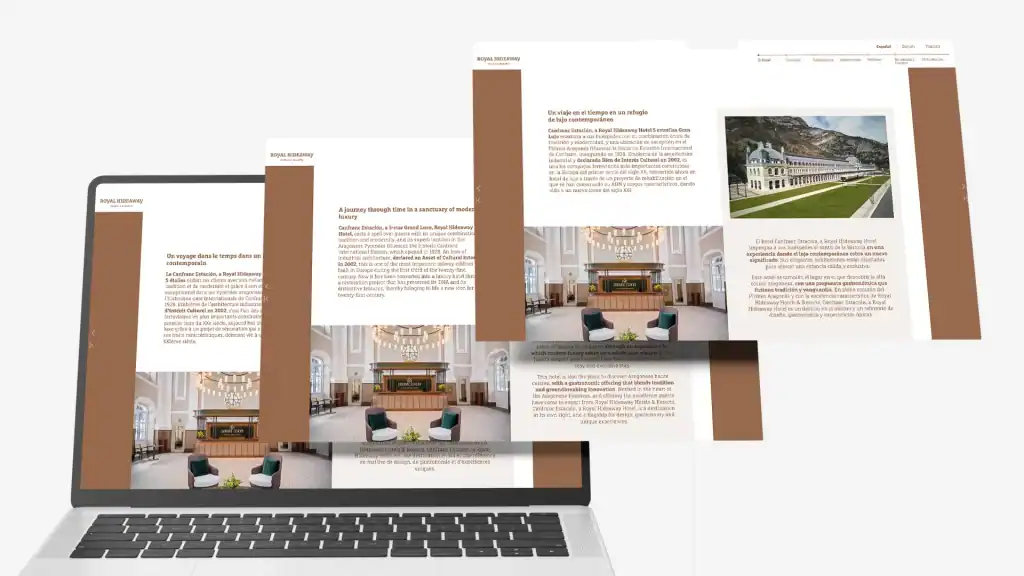 El resultado es un catálogo vivo, navegable y visualmente impactante, que transmite la identidad de Canfranc Estación con la atención al detalle y la excelencia que definen nuestro trabajo.